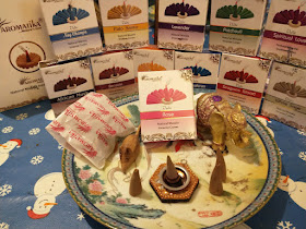 Aromatika is the brand name of V Expo, an Indian incense company based in Jaipur, who have been making incense for over 30 years. They make and distribute both perfumed and masala incense. I reviewed some of their Ace Scents range in the early days of this blog, and rated them quite highly, even though I felt the packaging was poor, and the appearance and presentation was more of a perfumed incense than a proper masala. I have felt for some time that I rated them too highly, especially after I went through 12 packs of their scented cones, such as the Rose, and found them, on the whole, pleasant but rather ordinary and not good quality, so when I saw a bundle of the Ace Scents range on Amazon, 10 packs for under £10, I thought that would be an opportunity to catch up, and see if I still felt they were decent sticks.
